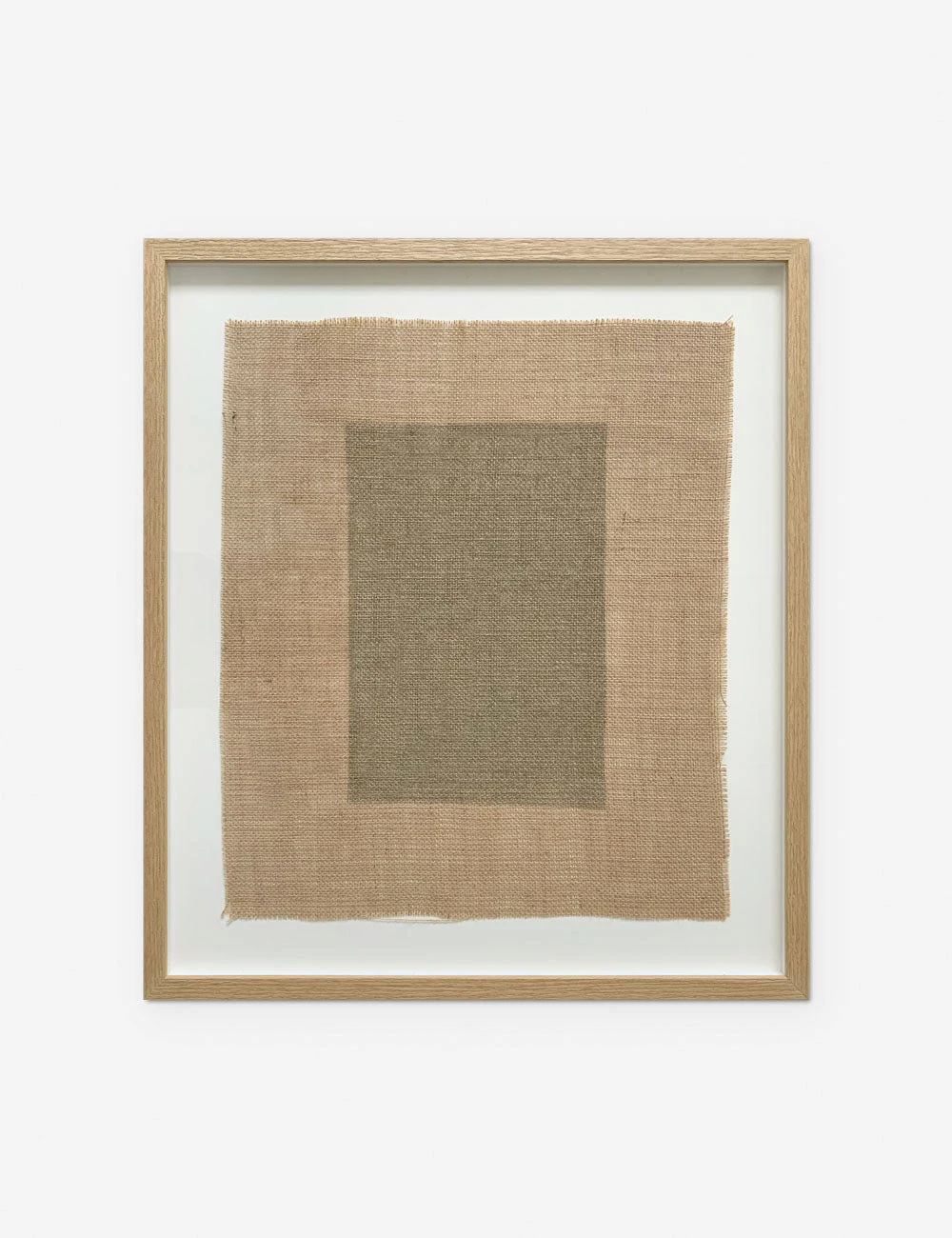 A solitary rectangle set on a woven burlap backdrop showcases artisan craftwork for this unique wall art piece. We love the floating frame and elemental design to pair stunning impact and rich, grounded texture in a modern wall artwork.