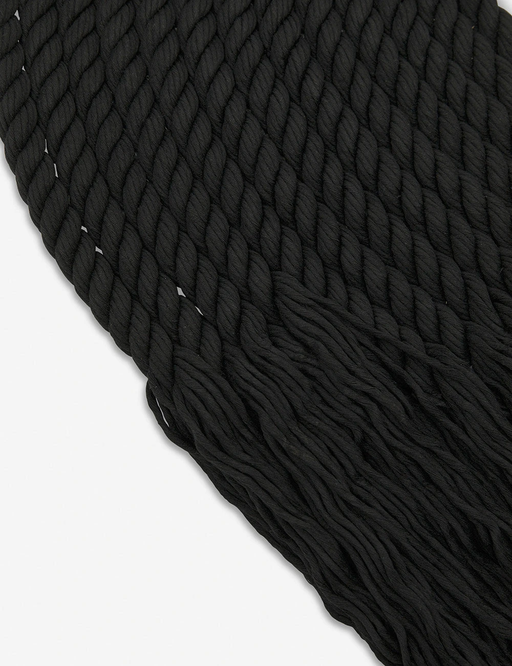 Based in Cedar Rapids, Iowa, designer Candice Luter creates one-of-a-kind wall art using reclaimed wood and textiles. This fiber art for walls is woven from soft cotton rope into a sumptuously arched design and then dip-dyed. Its oversized design immediately adds a ton of tactile and visual impact to your walls that we love above a sofa, bed, or sideboard.