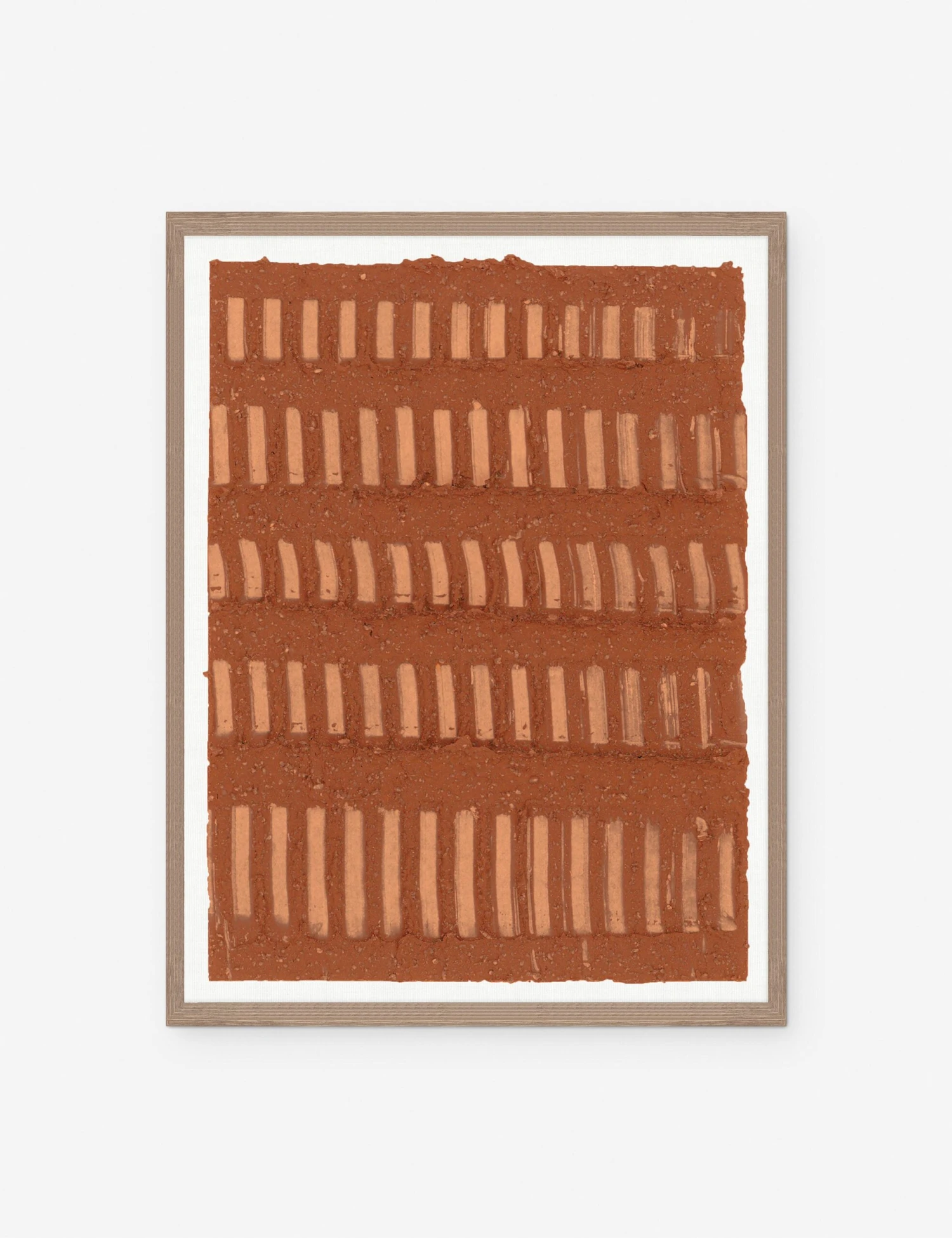 The Left Right wall art series by Danielle Davis features a minimalist composition that groups organic marks into a tidy array. With its warm clay tone, Left Right I brings a grounding quality to your wall decor. Each piece creates a beautiful feature on its own or can pair for statement appeal.
