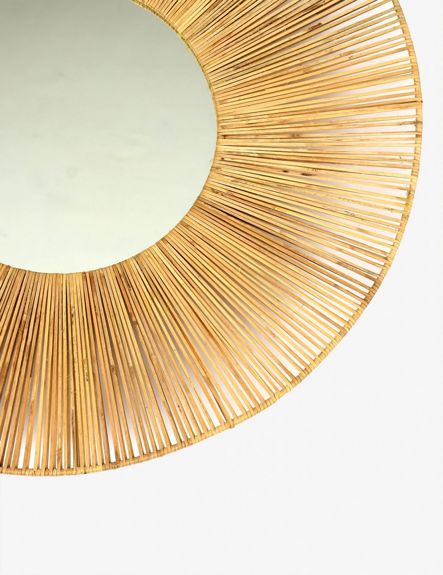Bring a fresh pop of style to your home design with this woven cane mirror. The oversized sunburst frame draws the eye, adding depth and texture to your decor with a handcrafted wall mirror made for bright appeal.